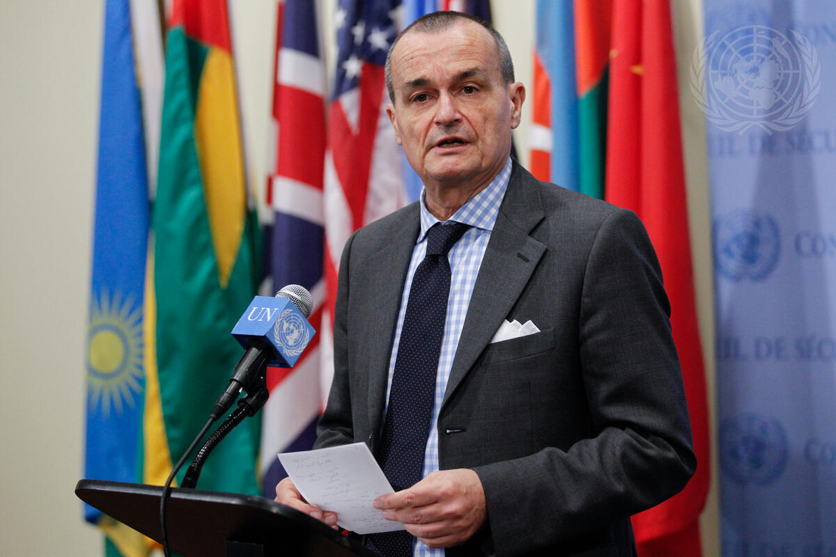 Gérard Araud, Permanent Representative of France to the UN and President of the Security Council for the month of December, speaks to the press following Security Council consultations on South Sudan and the United Nations Mission in South Sudan (UNMISS).