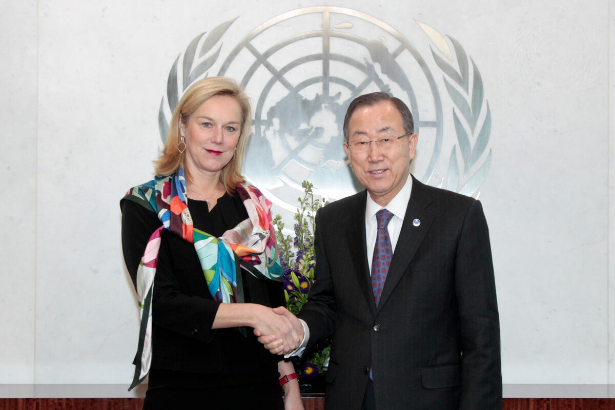 Secretary-General Ban Ki-moon (right) meets with Sigrid Kaag, Special Coordinator of the the joint mission of the Organisation for the Prohibition of Chemical Weapons (OPCW) and the UN to eliminate Syria’s chemical weapons programme.