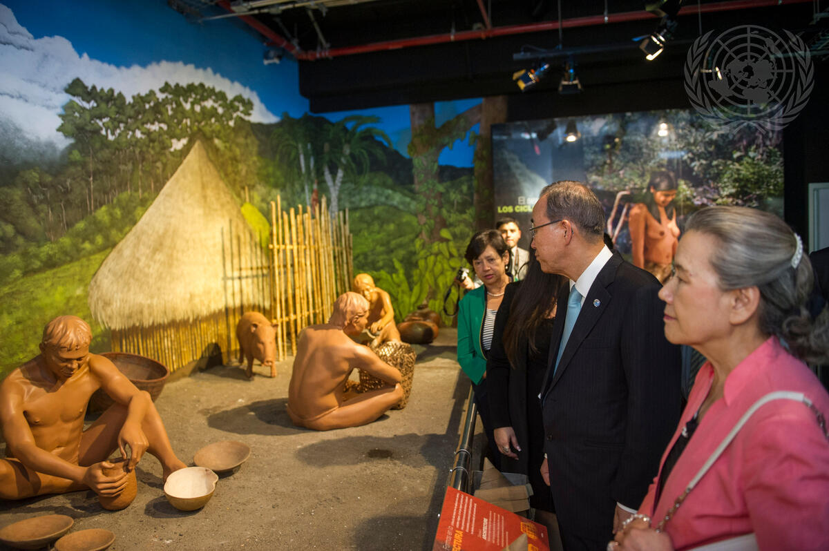 Secretary-General Ban Ki-moon (second from right) and his wife, Yoo Soon-taek (right), on a tour of the archaelogical museum ""Museo del Jade Marco Fidel Tristán Castro"" in San José, Costa Rica.