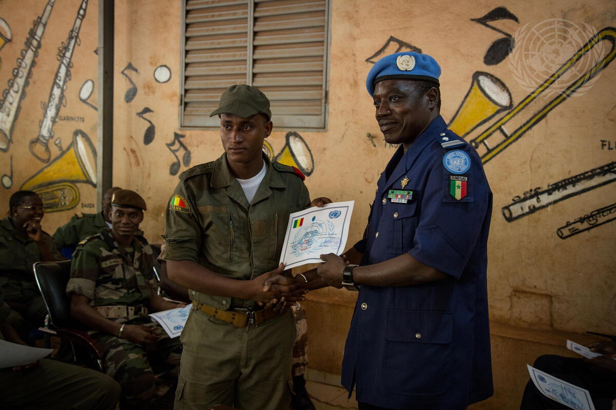 Members of Mali's National Guard and Police receive their certificates from a crowd control training conducted by the UN Police (UNPOL) Training Team of the Multidimensional Integrated Stabilization Mission in Mali (MINUSMA).