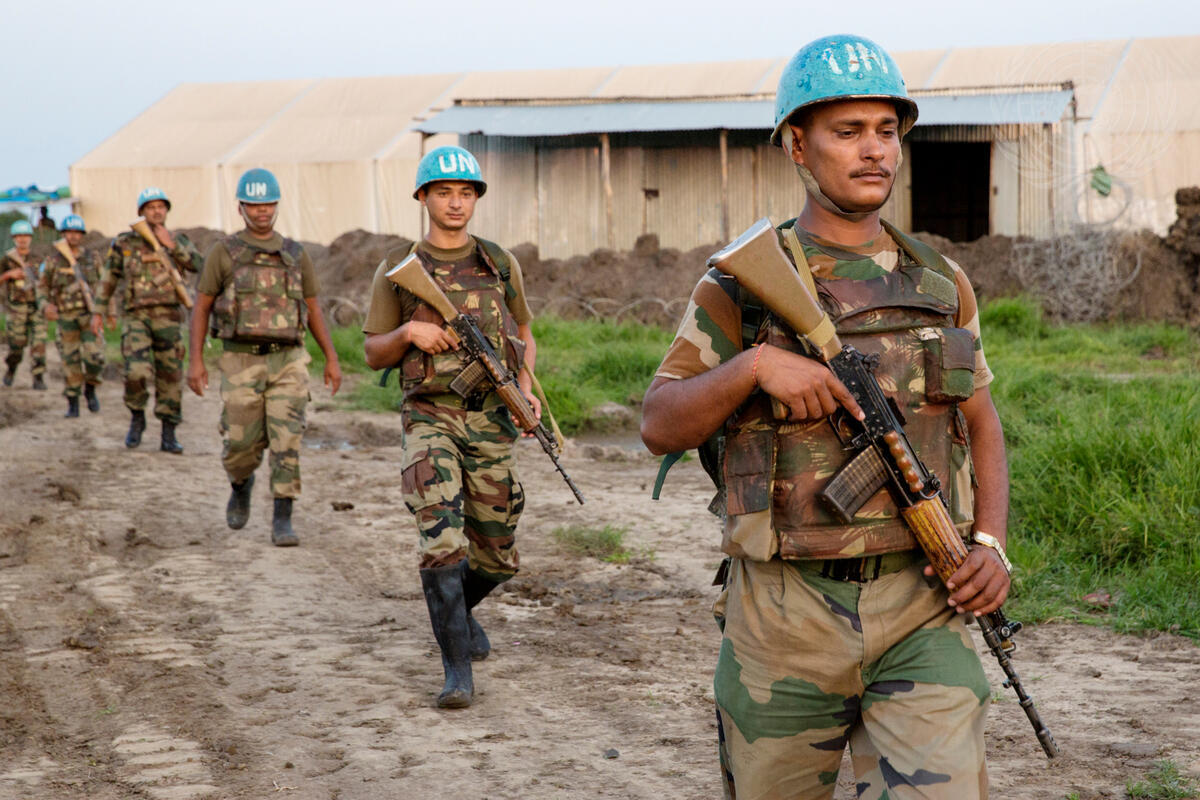 Relief of sentries at the World Food Programme (WFP) warehouse in Pibor, Jonglei State. The peacekeepers are members of the Indian contingent of the UN Mission in South Sudan (UNMISS).