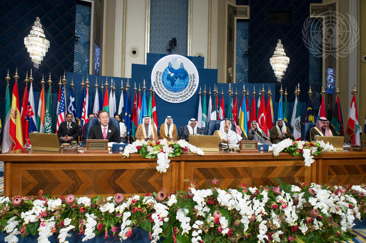 Secretary-General Ban Ki-moon (left) at the opening of the International Humanitarian Pledging Conference for Syria in Kuwait City. To the right is Sheikh Sabah Al-Ahmad Al-Jaber Al-Sabah (centre), Amir of the State of Kuwait and Sheikh Sabah Khalid Al Hamad Al Sabah, Deputy Prime Minister and Minister for Foreign Affairs.