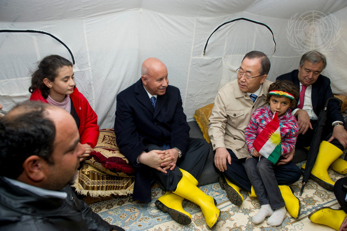 Secretary-General Ban Ki-moon visited the Kawrgosik Refugee Camp near Erbil, in the Kurdistan region of Iraq, where more than 200,000 refugees from Syria are being hosted by the regional government. He was joined by António Guterres, UN High Commissioner for Refugees, and Valerie Amos, Under-Secretary-General for Humanitarian Affairs.