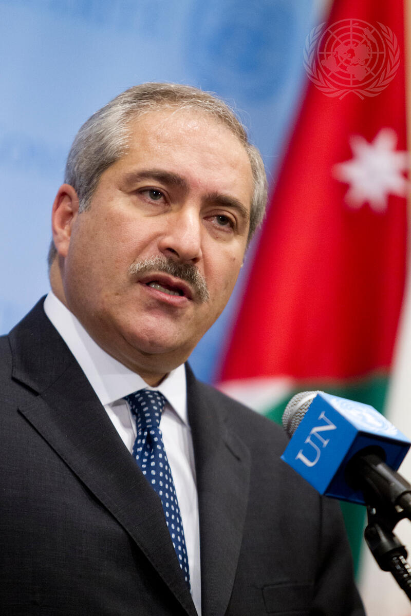 Nasser Judeh, Minister for Foreign and Expatriates Affairs of Jordan, addresses the press following the morning portion of an all-day quarterly Security Council meeting on the situation in the Middle East.