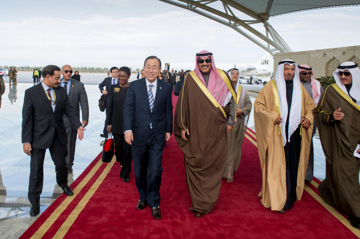 Secretary-General Ban Ki-moon is received at the airport in Kuwait City by Sheikh Sabah Khalid Al Hamad Al Sabah, Deputy Prime Minister and Minister for Foreign Affairs.