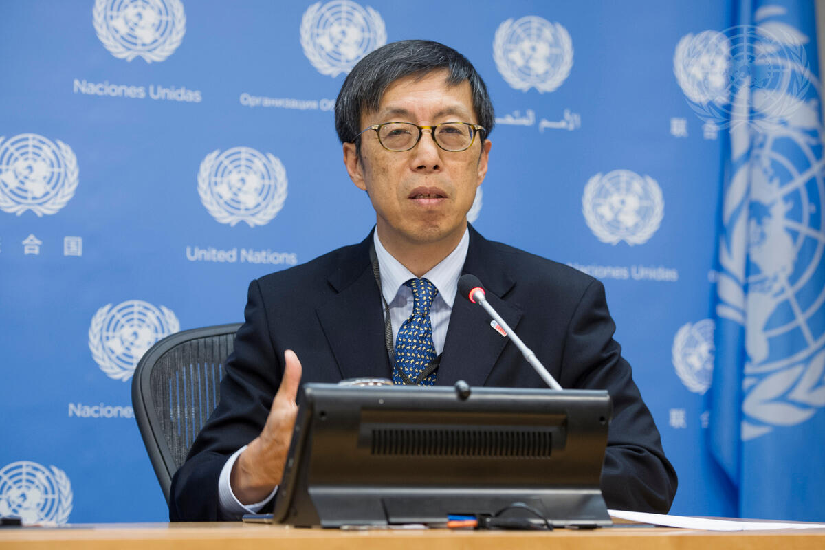 Kazuyoshi Umemoto, Deputy Permanent Representative of the Permanent Mission of Japan and Chair of the Mine Action Support Group, briefs the press on the occassion of International Day for Mine Awareness and Assistance in Mine Action during today's noon briefing at UN Headquarters.