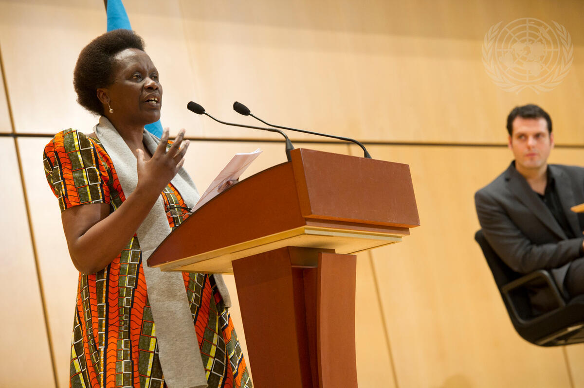 Esther Mujawayo, survivor of the 1994 genocide in Rwanda, addresses the commemoration of the International Day of Reflection on the Genocide (7 April), held by the UN Office at Geneva (UNOG).