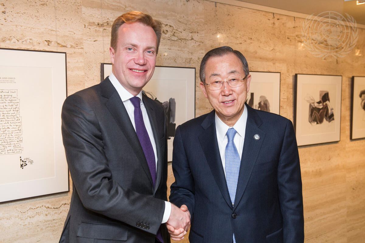 Secretary-General Ban Ki-moon (right) meets with Børge Brende, Minister for Foreign Affairs of Norway, in Washington, DC.