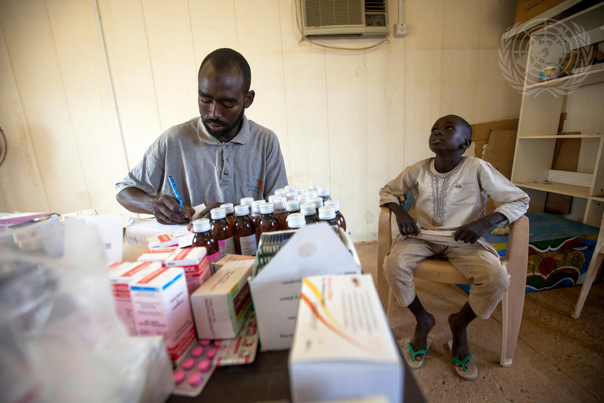 A nurse from the non-governmental organization (NGO), World Vision, attends to a child who needs medication being provided by the World Health Organization (WHO) to displaced children residing in the African Union-United Nations Hybrid Operation in Darfur (UNAMID) base in Khor Abeche, South Darfur, following attacks by an armed group on 22 March, 2014. About 300 heavily armed men attacked the nearby IDP (interally displaced persons) camp, setting fire to dozens of shelters and stealing livestock belonging to the residents. The World Food Programme (WFP) is providing food and the UNAMID compound provides potable water and health care while a team of UNAMID engineers work to construct a buffer zone where the IDPs can settle in the near future.