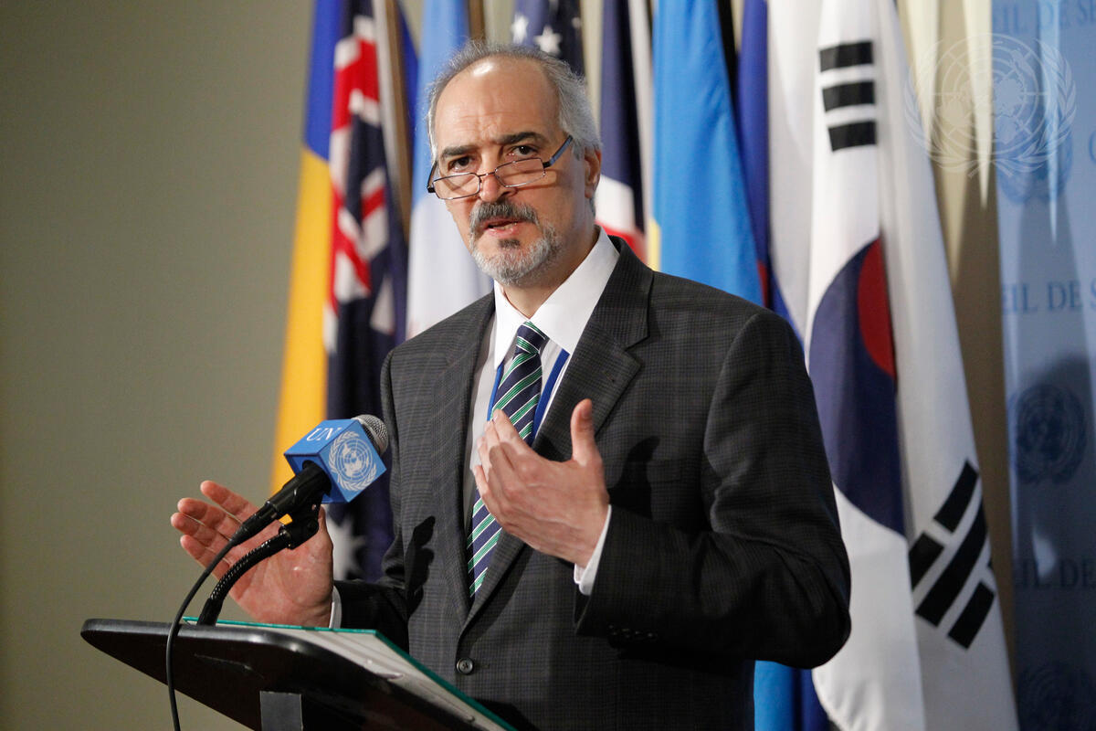 Bashar Ja’afari, Permanent Representative of the Syrian Arab Republic to the UN, speaks to journalists following a closed-door briefing to the Security Council on the situation in his country by UN High Commissioner for Human Rights Navi Pillay.