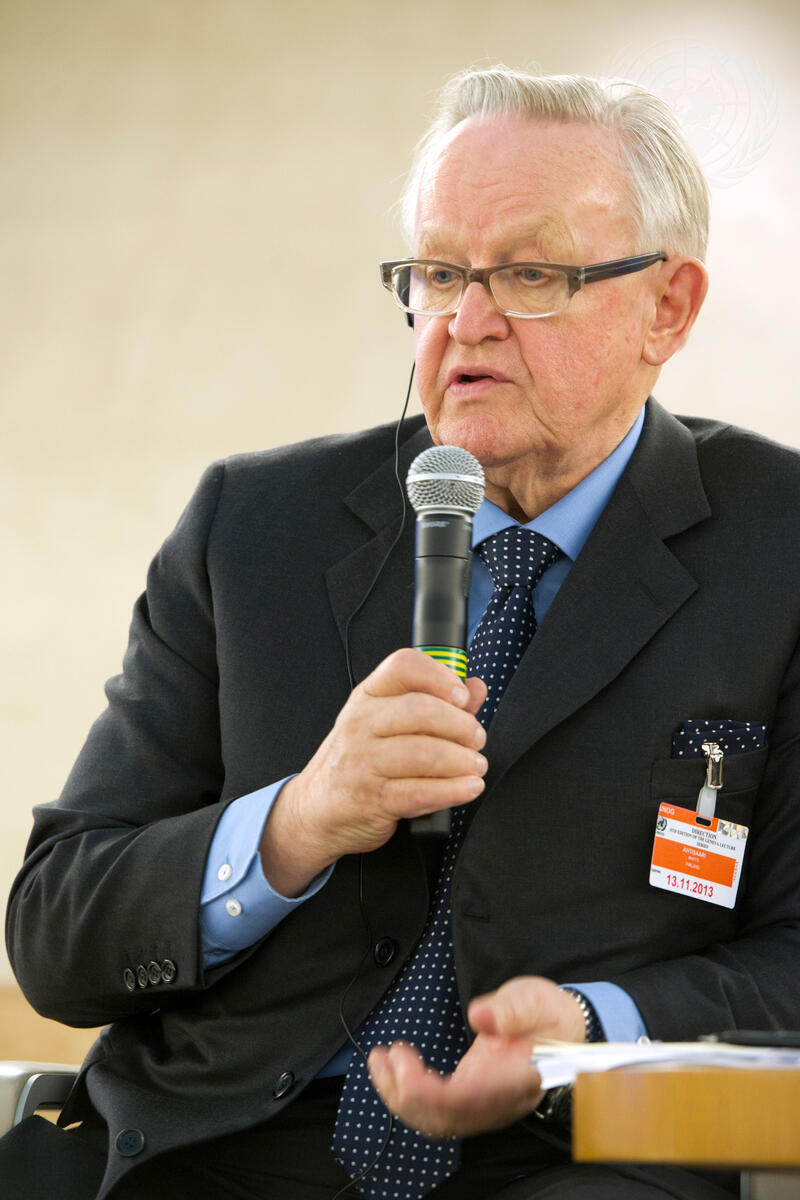 Martti Ahtisaari, Nobel Peace Prize Laureate and former President of Finland, speaks at the eighth edition of the Geneva Lecture Series, on the theme, “Complexities of peacemaking: The untold story"", at the UN’s Palais des Nations.