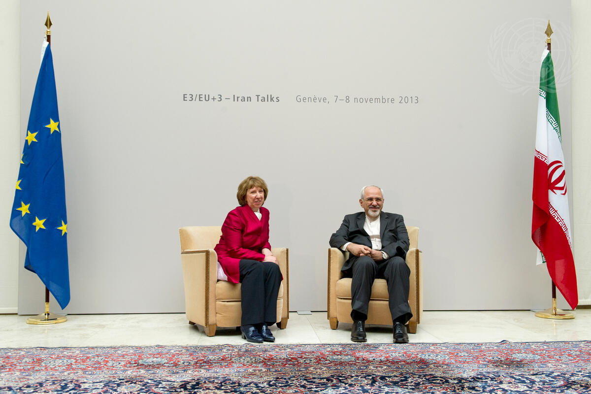 Catherine Ashton (left), European Union High Representative for Foreign Affairs and Security Policy, with Javad Zarif, Minister for Foreign Affairs of the Islamic Republic of Iran, at the time of the talks.