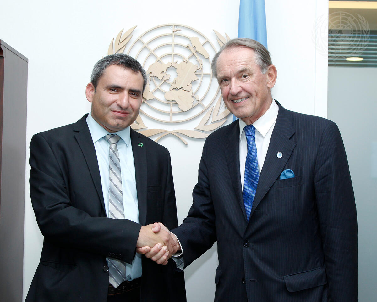 Deputy Secretary-General Jan Eliasson meets with Zeev Elkin, Deputy Minister for Foreign Affairs of Israel.