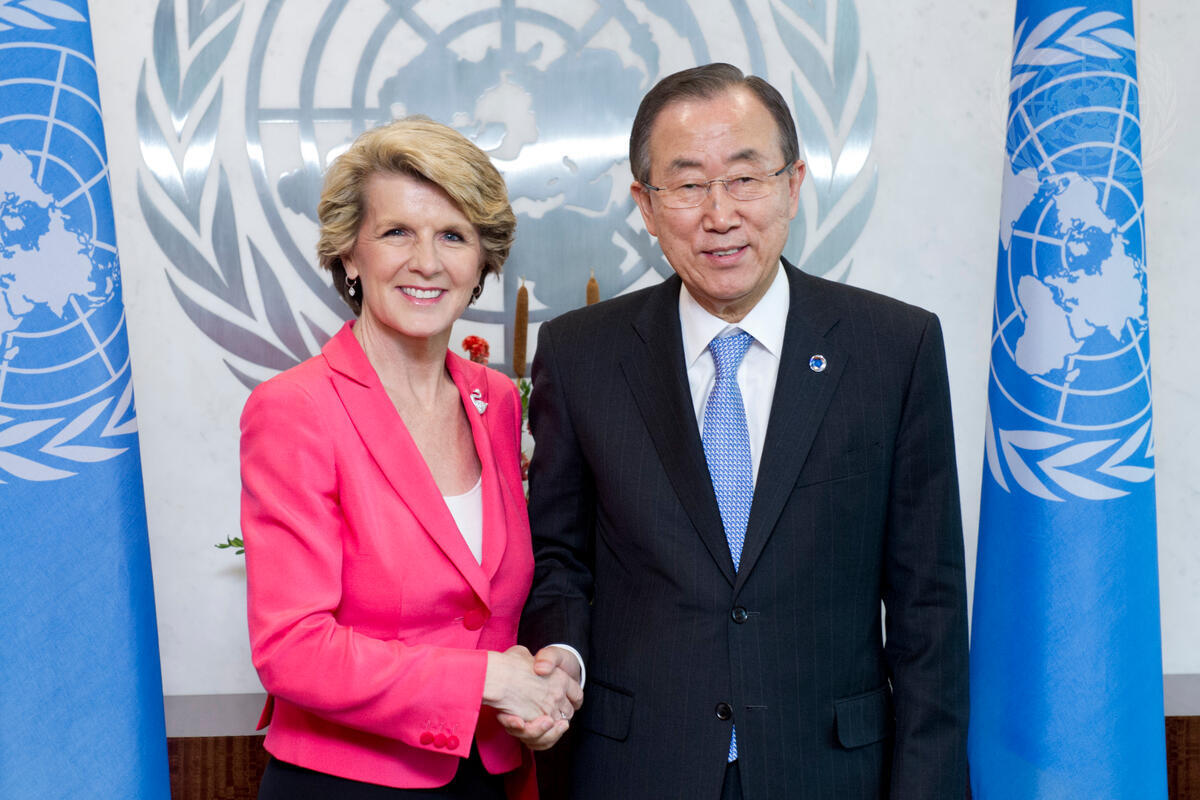 Secretary-General Ban Ki-moon (right) meets with Julie Bishop, Minister for Foreign Affairs of Australia.