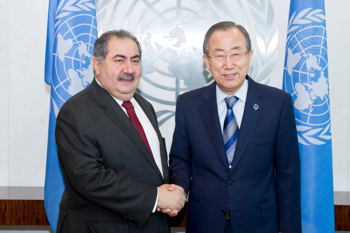 Secretary-General Ban Ki-moon (right) meets with Hoshyar Zebari, Minister for Foreign Affairs of Iraq.