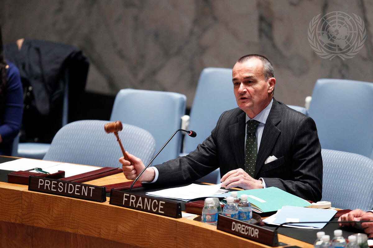 Gérard Araud, Permanent Representative of France to the UN and President of the Security Council for December, chairs the Council’s meeting on the situation in Libya.
