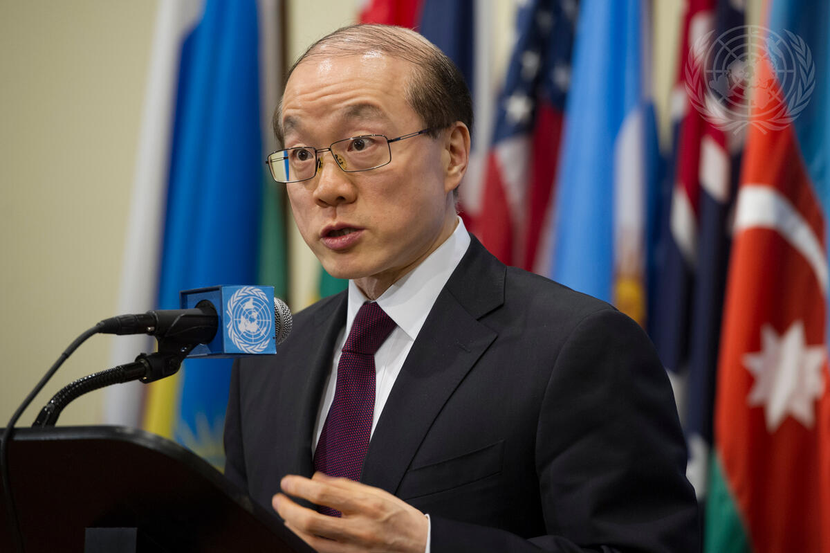 Liu Jieyi, Permanent Representative of China to the UN and President of the Security Council for November, speaks to journalists following closed-door Council consultations on Yemen.
