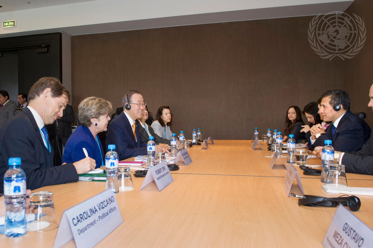Secretary-General Ban Ki-moon (third from left) meets with Ollanta Humala Tasso (right), President of Peru.