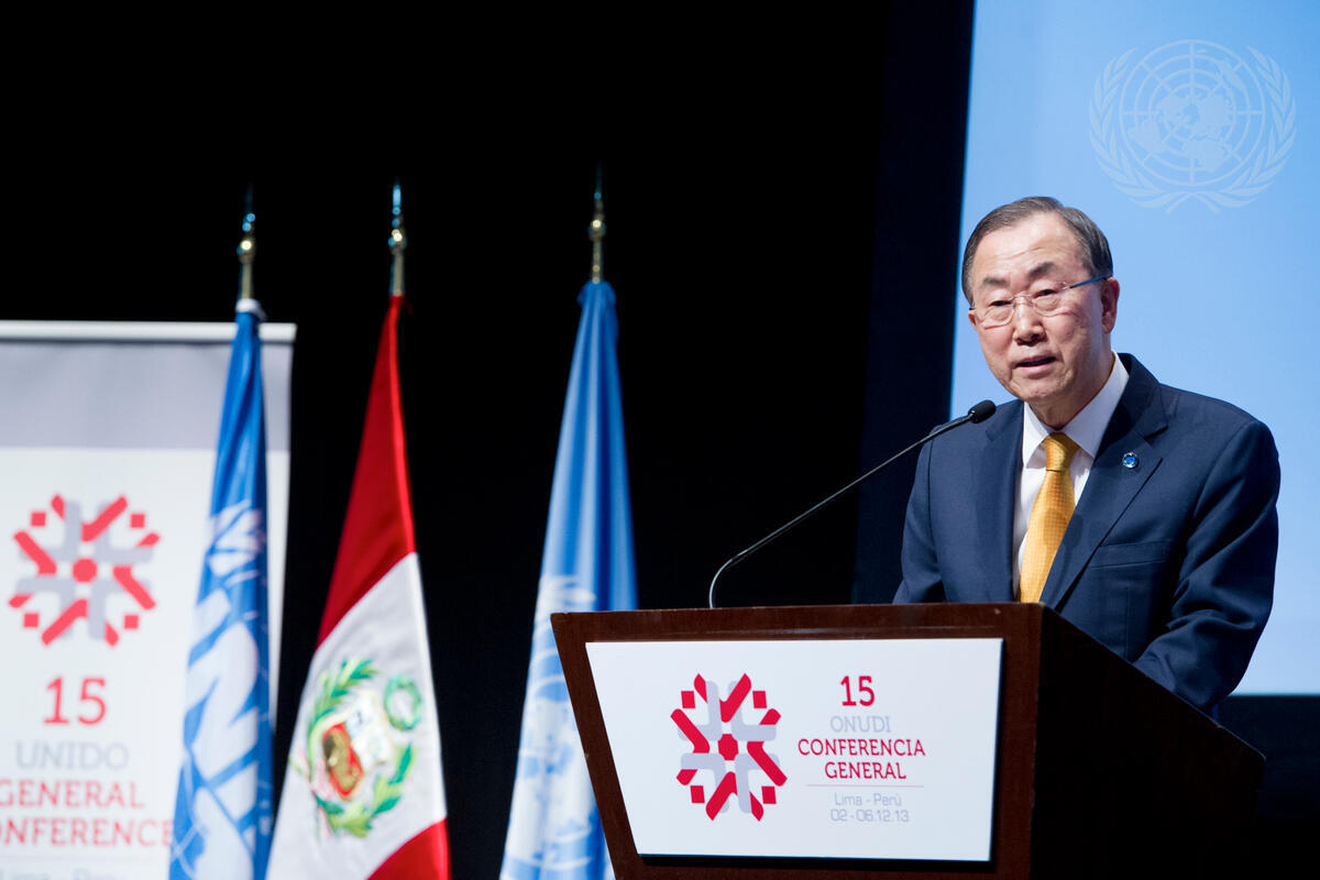 Secretary-General Ban Ki-moon addresses the opening session of the 15th General Conference of the UN Industrial Development Organization (UNIDO), in Lima, Peru.