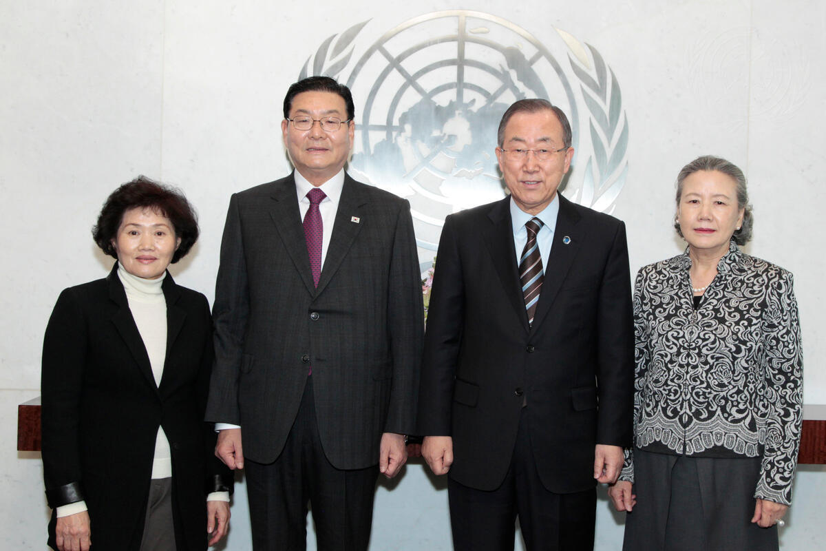 Secretary-General Ban Ki-moon (centre right) and his wife, Yoo Soon-taek (right), during a private meeting.