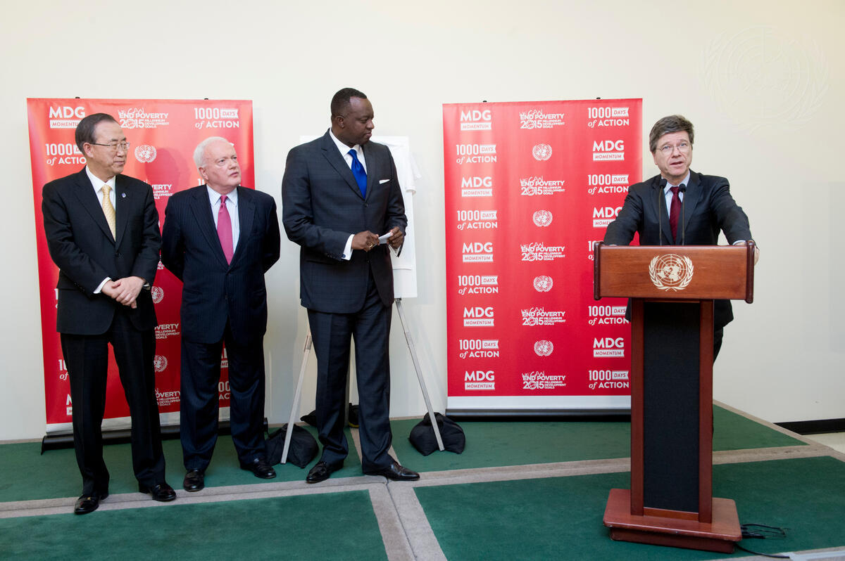 Jeffrey Sachs (at the podium), Secretary-General’s Special Adviser on the MDGs, speaks at the event marking the 1,000-day countdown to the Millennium Development Goals (MDGs) deadline.