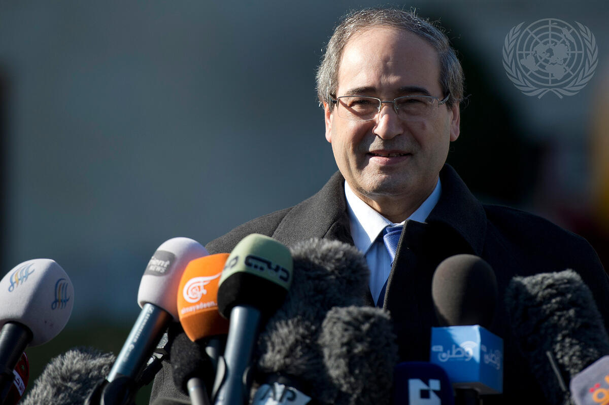 Faisal Makdad, Deputy Foreign Minister of the Syrian Arab Republic, speaks to journalists in the course of the second round of talks taking place in Geneva between representatives of the Syrian government and the country’s opposition.