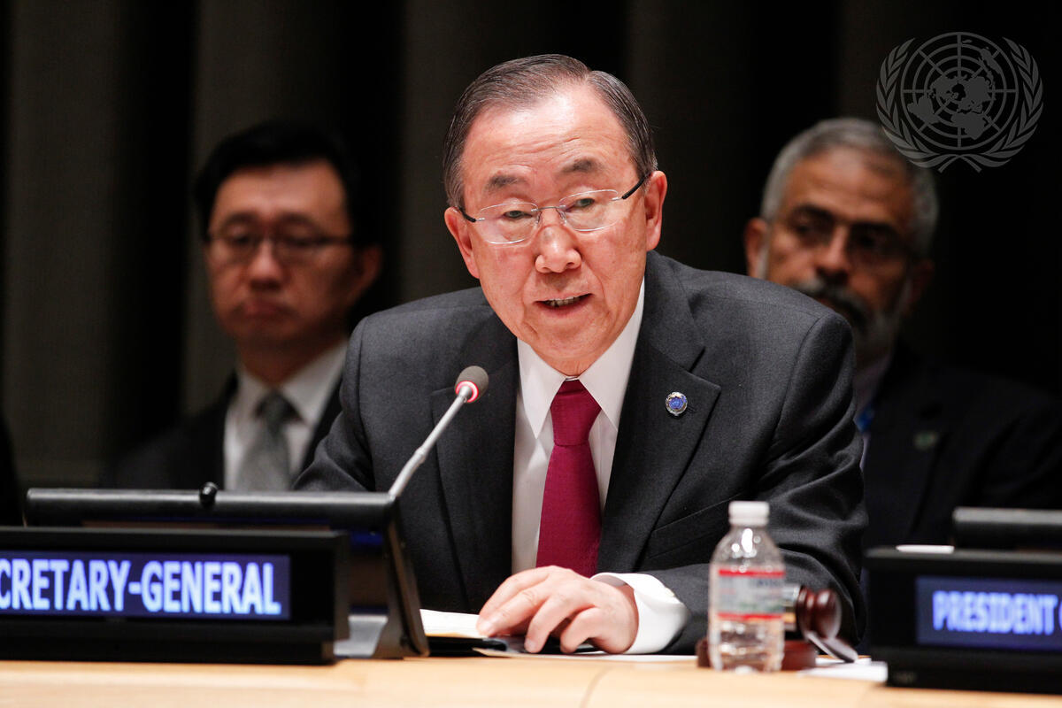 Secretary-General Ban Ki-moon speaks at the opening of the General Assembly's thematic debate, ""Water, Sanitation and Sustainable Energy in the Post-2015 Development Agenda"". The opening segment was followed by three panel discussions on the water and sanitation challenge, the sustainable energy challenge and the water energy nexus.