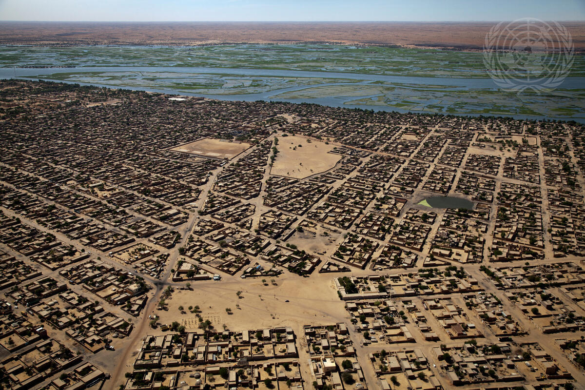An aerial view of the town of Gao, Mali, on the day of the country’s parliamentary elections. The UN Multidimensional Integrated Stabilization Mission in Mali (MINUSMA) provided logistical and security support to the electoral process.