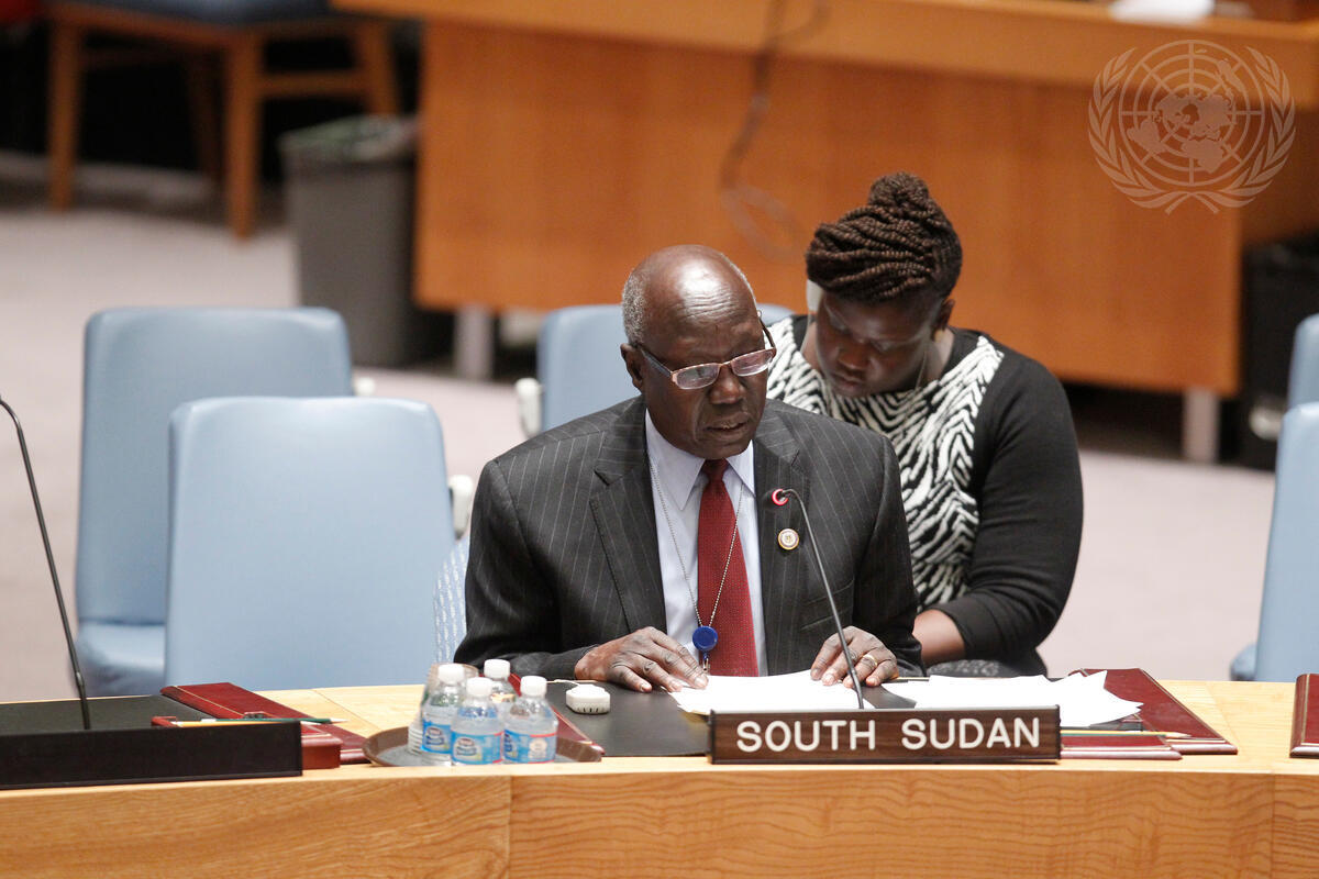 Francis Mading Deng, Permanent Representative of the Republic of South Sudan to the UN, addresses the Council.