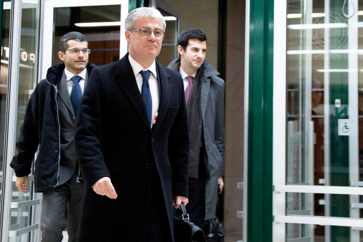 Jacques Audibert (centre), Director-General for Political and Security Affairs at the French Foreign Ministry, arrives at the talks in Geneva.