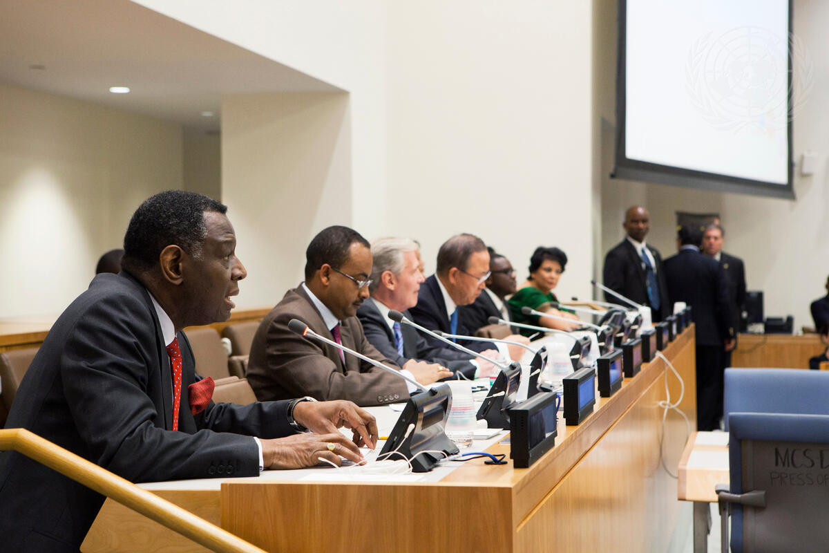 Babatunde Osotimehin (left), Executive Director of the UN Population Fund (UNFPA), speaks at a high-level meeting to review the “progress, challenges and opportunities” in accelerating the achievement of the fifth Millennium Development Goal (MDG 5) – “Improve Maternal Health”.