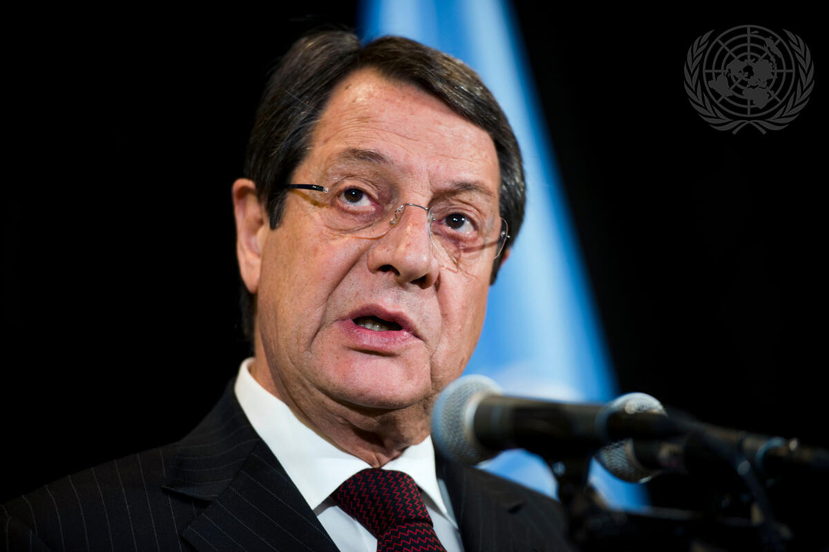 Nicos Anastasiades, President of the Republic of Cyprus, speaks to journalists.