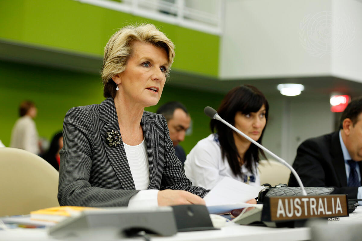 Julie Bishop (left), Minister for Foreign Affairs of Australia, addresses the round table discussion on “International and regional cooperation and partnerships for disability-inclusive development”, held as part of the General Assembly’s high-level meeting on disability and development.