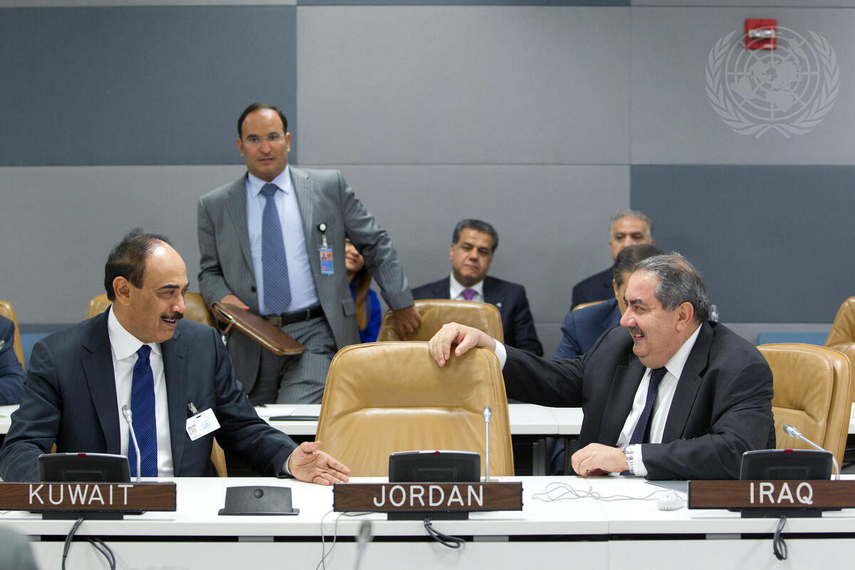 Some of the participants of the meeting: Sheikh Sabah Khalid Al Hamad Al Sabah (left), Deputy Prime Minister and Minister for Foreign Affairs of the State of Kuwait; Mansour Al-Otaibi (centre left), Permanent Representative of the State of Kuwait to the UN; and Hoshyar Zebari (right), Minister for Foreign Affairs of Iraq.