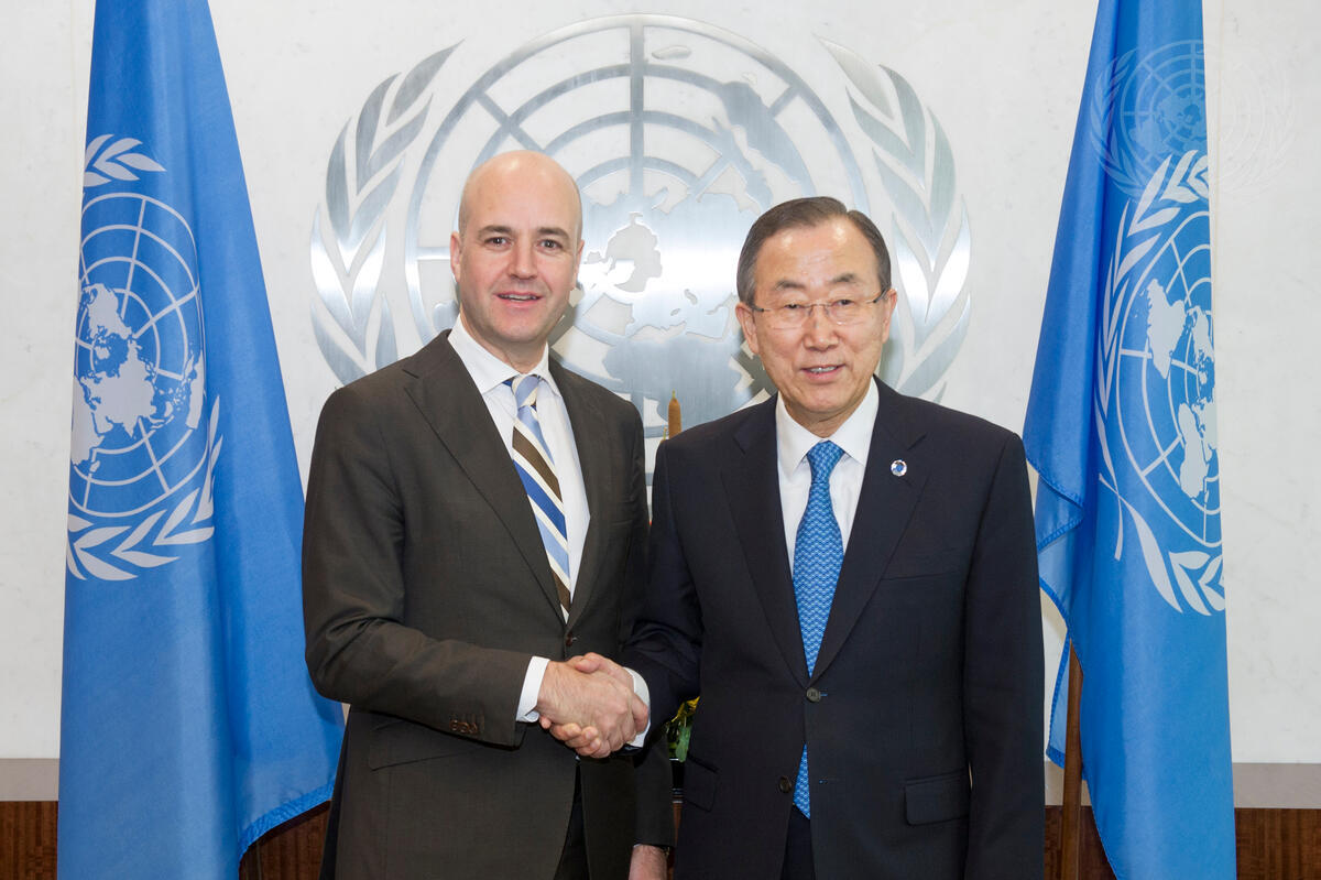 Secretary-General Ban Ki-moon (right) meets with Fredrik Reinfeldt, Prime Minister of Sweden.