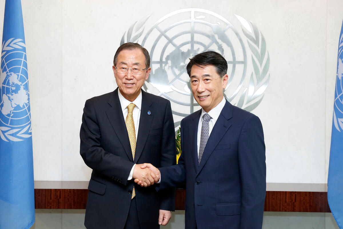 Secretary-General Ban Ki-moon (left) meets with Oh Joon, new Permanent Representative of the Republic of Korea to the United Nations.
