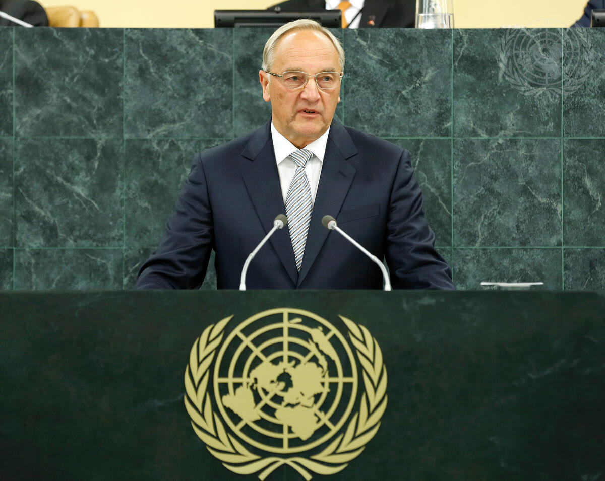Andris Berzinš, President of the Republic of Latvia, addresses the general debate of the sixty-eighth session of the General Assembly.