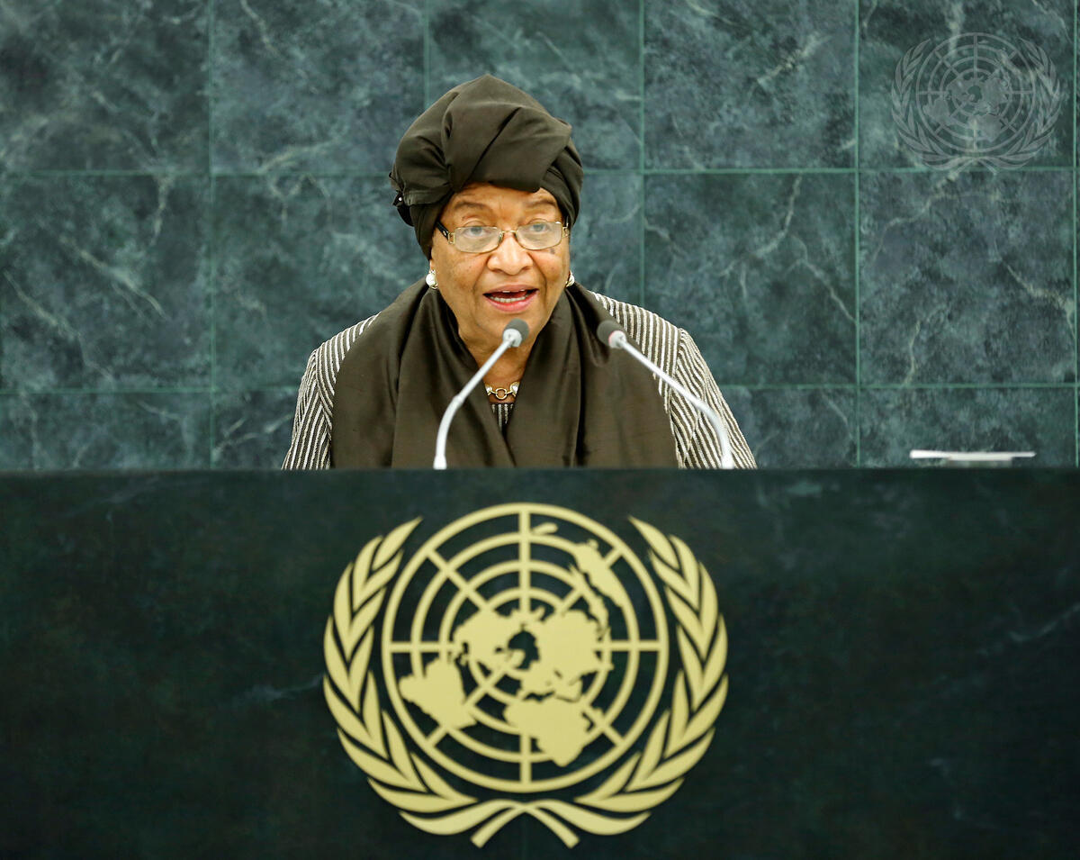 Ellen Johnson-Sirleaf, President of the Republic of Liberia, addresses the general debate of the sixty-eighth session of the General Assembly.
