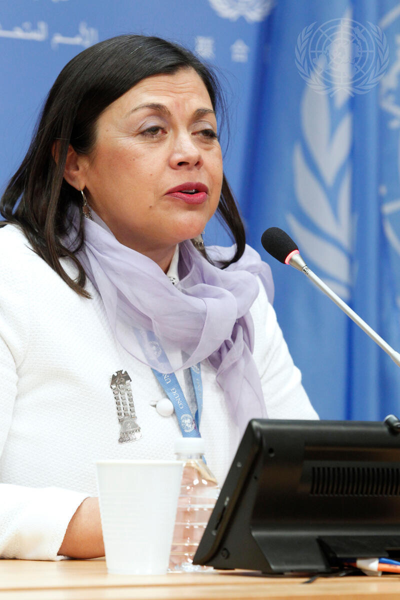 Maria Soledad Cisternas Reyes, Chair of the Committee on the Rights of Persons with Disabilities, addresses a press conference on the General Assembly’s high-level meeting on disability and development.