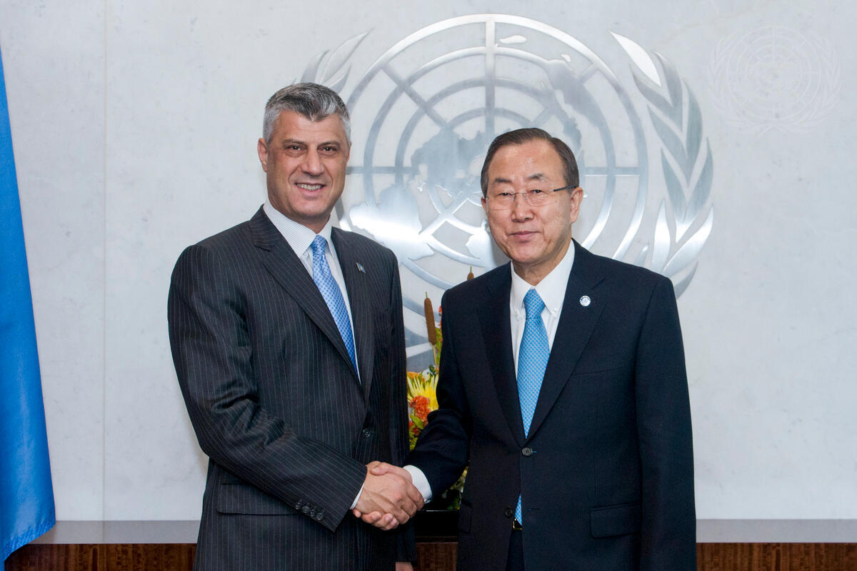 Secretary-General Ban Ki-moon (right) meets with Hashim Thaçi, Representative of the Kosovo authorities.