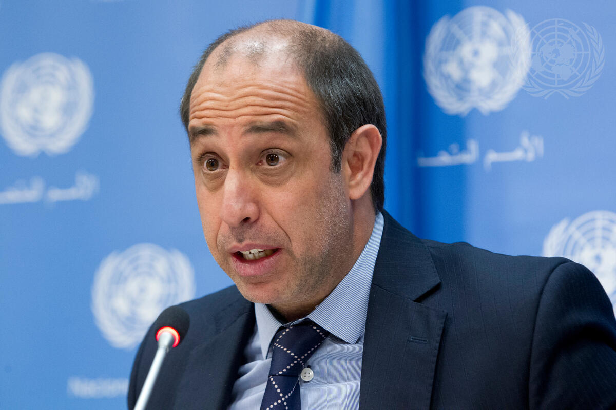 Tomás Ojea Quintana, UN Special Rapporteur on the situation of human rights in Myanmar, speaks during a press conference at UN Headquarters.