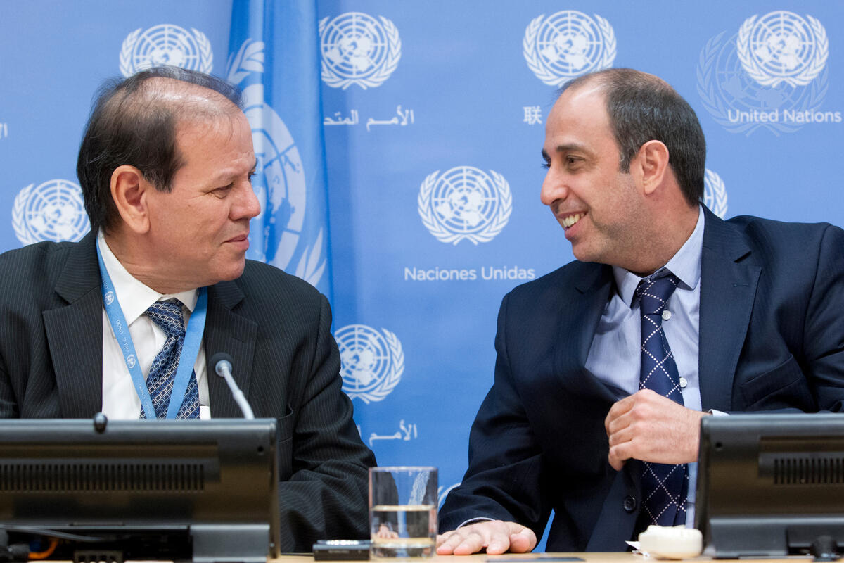 Caption Description Abdelhamid El Jamri (left), Chair of the Committee on the Protection of the Rights of All Migrant Workers and Members of their Families, and Tomás Ojea Quintana, UN Special Rapporteur on the situation of human rights in Myanmar, during their press conference at UN Headquarters.