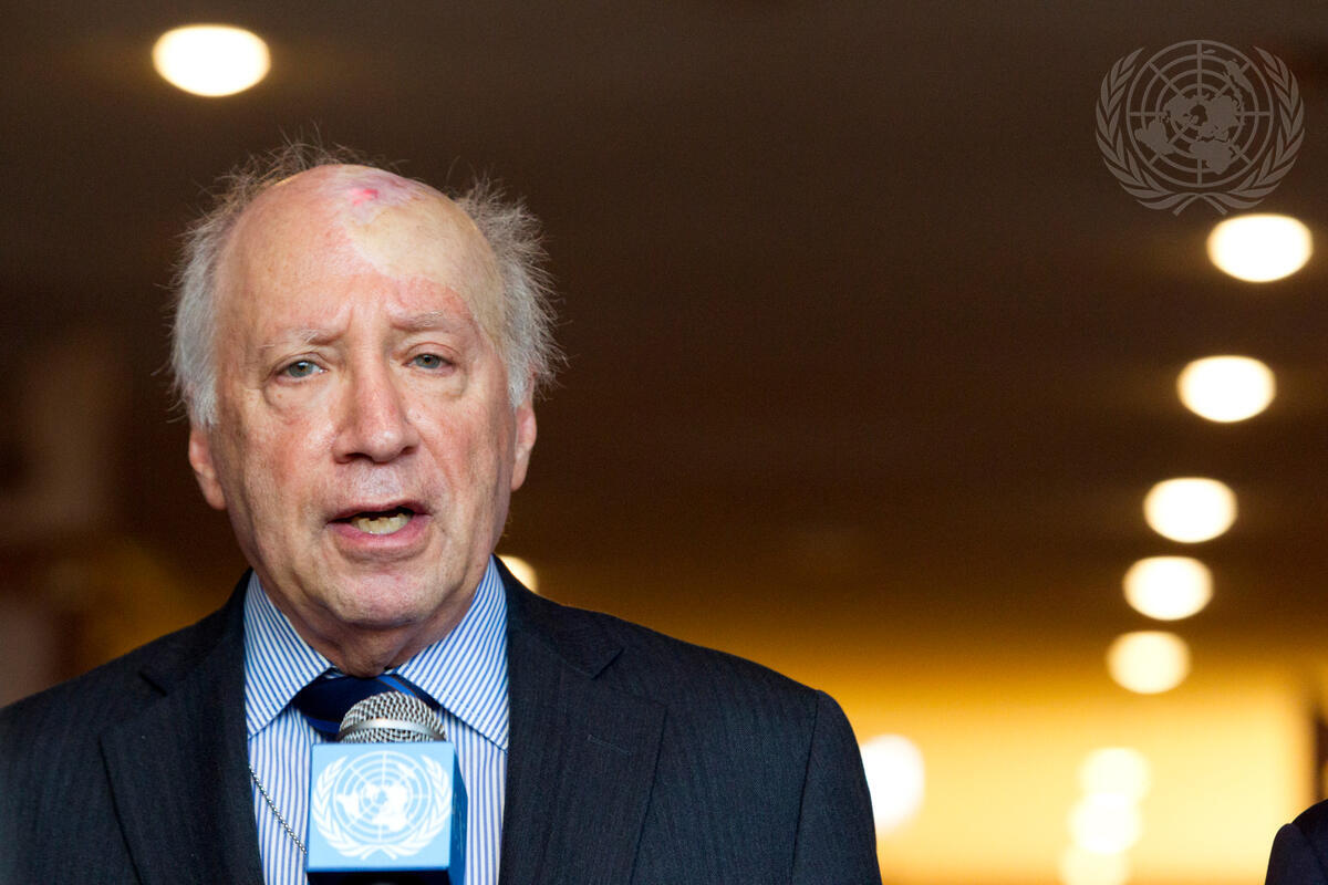 Matthew Nimetz, Personal Envoy of the Secretary-General for the talks between Greece and the former Yugoslav Republic of Macedonia, speaks to journalists.