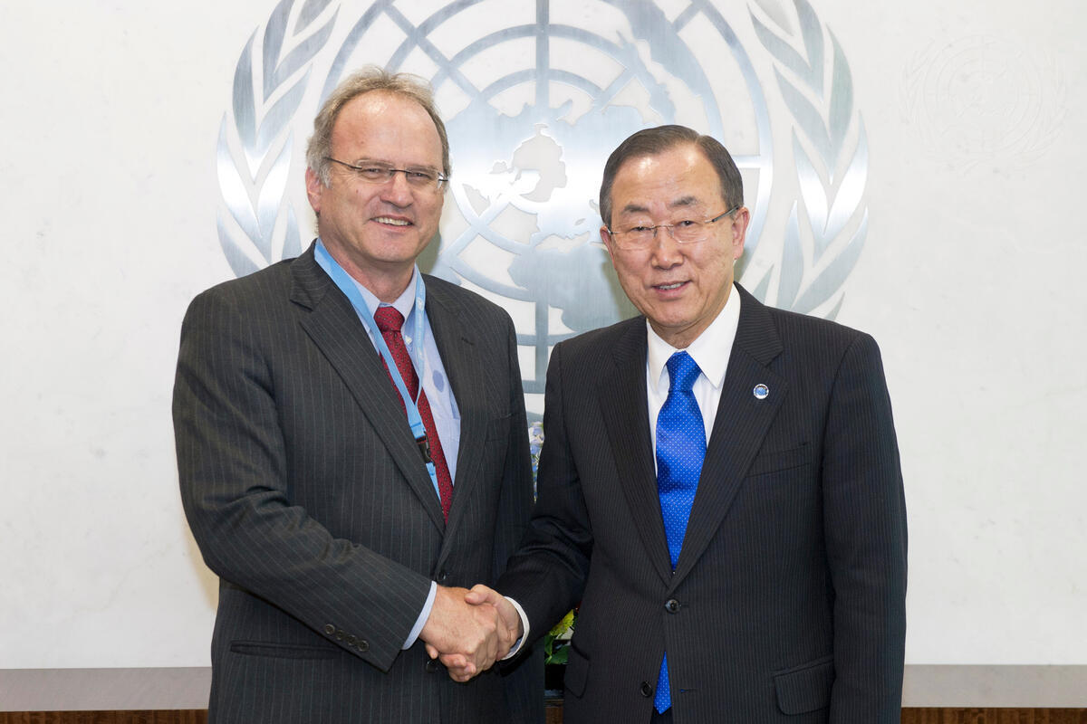 Secretary-General Ban Ki-moon (right) meets with Christof Heyns, UN Special Rapporteur on extrajudicial, summary and arbitrary executions.