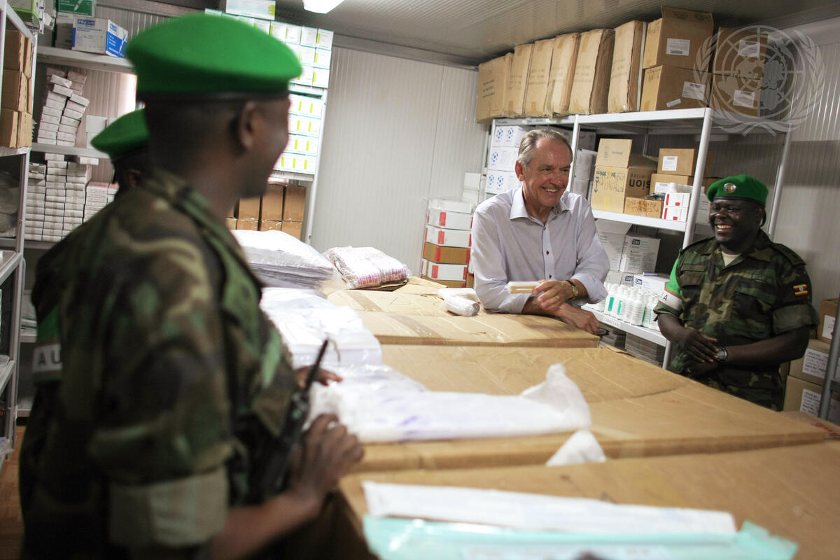 Deputy Secretary-General Jan Eliasson (second from right) meets with medical staff from the Ugandan contingent serving with the African Union Mission in Somalia (AMISOM) at a Level II medical facility at an AMISOM base near the Aden Abdulle International Airport in Mogadishu.