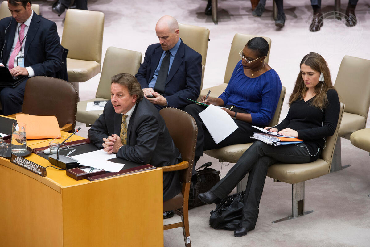 Albert Gerard Koenders (second from left), Special Representative of the Secretary-General and Head of the UN Operation in Côte d'Ivoire (UNOCI), addresses the Security Council meeting on the situation in that country.