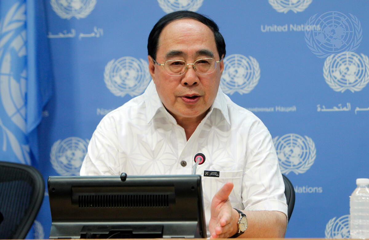 Wu Hongbo, UN Under-Secretary-General for Economic and Social Affairs and Secretary-General for the Third SIDS Conference briefs journalists. Also addressing the press with him was Ali’ioaiga Feturi Elisaia, Permanent Representative of the Independent State of Samoa to the UN and ex officio member of the PrepCom Bureau.