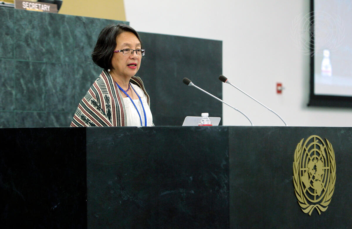 Victoria Tauli-Corpuz, Special Rapporteur on the rights of indigenous peoples, speaks at today's interactive discussion on ""Indigenous priorities for sustainable development"". The informal hearings are being held by the Assembly as a preparatory process for the high-level meeting of the sixty-ninth session of the General Assembly, to be known as the World Conference on Indigenous Peoples.