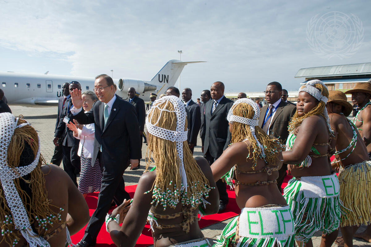 After having visited Namibia, Secretary-General Ban Ki-moon is given a special ceremony upon his departure from the country.
