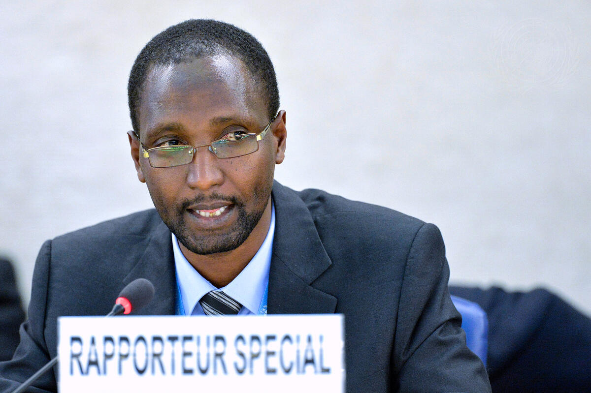 Mutuma Ruteere, the UN Special Rapporteur on contemporary forms of racism, racial discrimination, xenophobia and related intolerance, briefs the Human Rights Council.